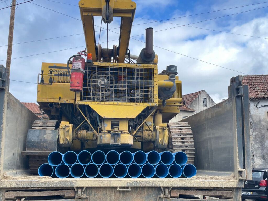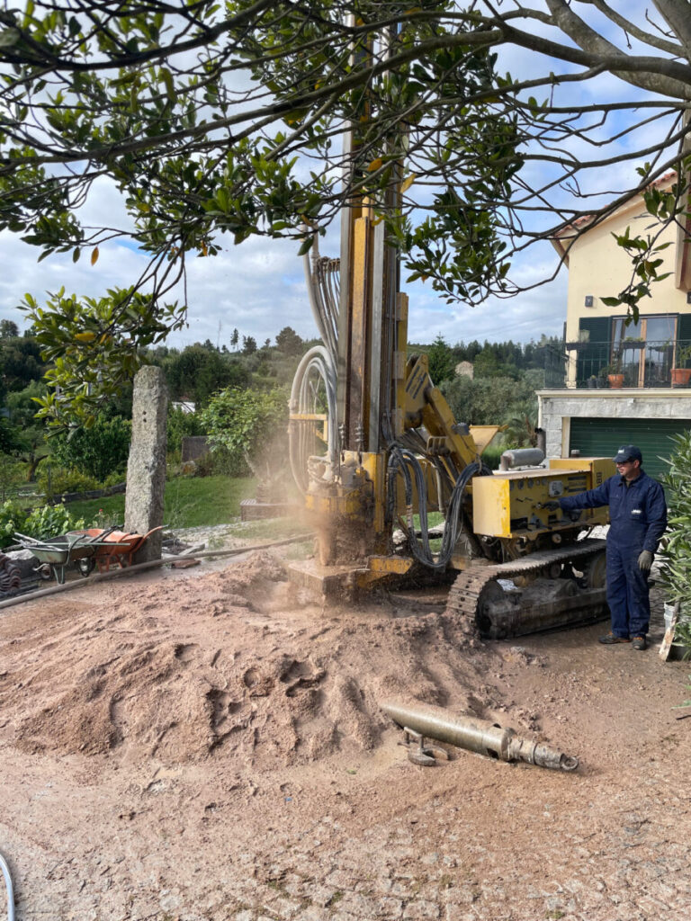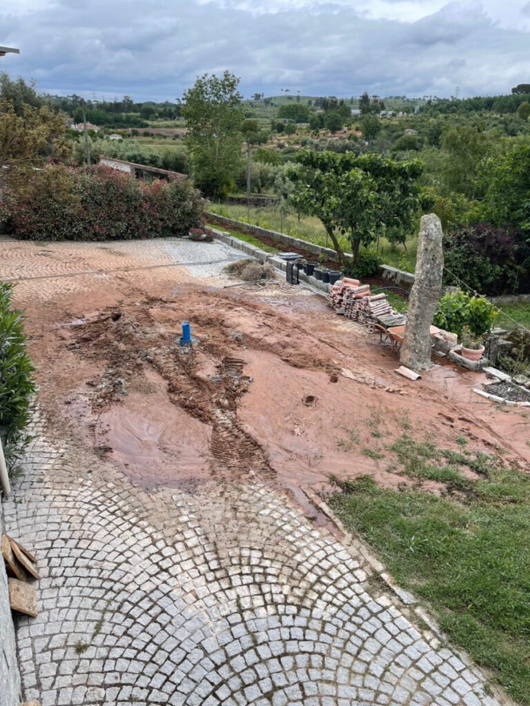 In mei kwam er een immens grote machine het terrein op die een dag lang met een enorme boor de grond indrong. Aan het eind van de middag lag er een enorme berg granietstof naast een mooi gat waar water uitspoot. Raak! Nu nog even de rommel opruimen en een pomp naar beneden laten zakken dan waren we verzekerd van een niet-aflatende aanvoer van water. Omdat we vlak hierna een tripje naar Nederland maakten bleef de berg graniet liggen. We vroegen onze tuinman, die bij onze afwezigheid voor de tuin zorgt, om een klein paadje te maken naar de garage zodat we de auto bij terugkomst binnen konden parkeren.